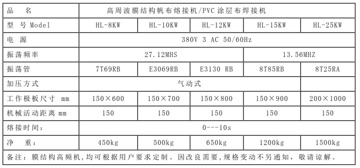 三、PVC磁性軟簾門高頻焊接機技術規(guī)格: