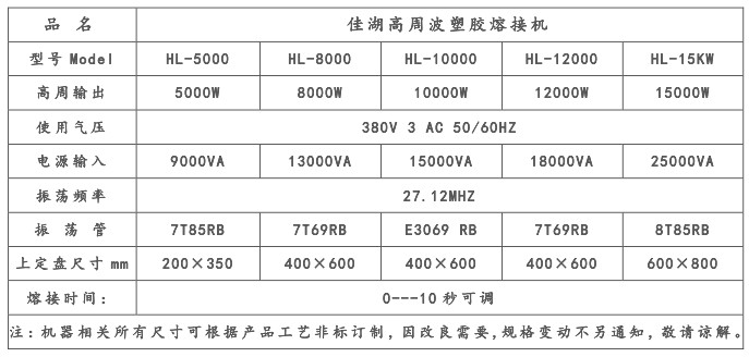 滑臺(tái)式高頻機(jī)、單頭推臺(tái)式高周波:主要用于各種聚氯乙烯(PVC)為主的塑膠熔接、焊接、吸塑包裝(包括上下雙泡殼熱合切邊,泡殼與紙板熱合),汽車內(nèi)飾件、壓商標(biāo)、文具盒、醫(yī)療高電位、透析紙與泡殼封邊、壓雨衣、吹氣玩具、塑料封面,游泳圈、充氣玩具、摩托坐墊壓花、各種凹凸形狀的花紋圖案、字母文字的壓制。等特殊產(chǎn)品可根據(jù)客戶要求定制。