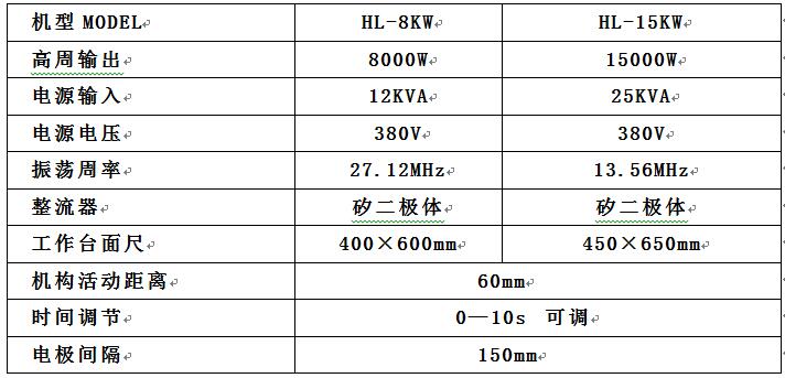 二、EVA環(huán)保釣魚防水袋高頻熱合機(jī)機(jī)械參數(shù):