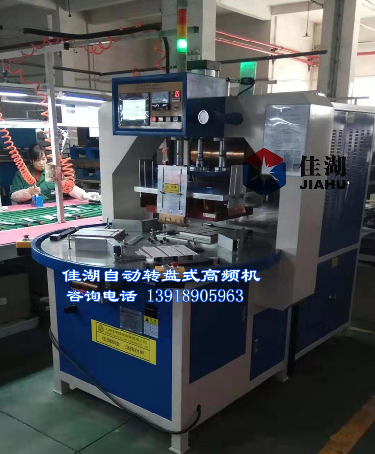 其實(shí)高周波和高頻機(jī),高周波機(jī),高周波熔接機(jī),高周波塑膠熔接機(jī),高頻熱合機(jī)是同一種機(jī)器設(shè)備,只是設(shè)備款式和型號(hào)不同,高頻機(jī)主要是用在塑膠熔接,PVC、PET、PETG、PU皮革,吸塑包裝,吸塑和紙卡包裝貼合,PVC軟膠袋,PETG吸塑泡殼封口、吸塑紙板封口、汽車(chē)座墊,汽車(chē)商標(biāo),汽車(chē)地墊腳墊,暖水袋,電池包裝封口,U盤(pán)吊卡吸塑包裝封口、吸塑泡殼封口、PVC塑料泡殼封口、PVC泡殼焊接、PVC塑料泡殼焊接、高頻塑料焊接、高周波塑膠封口、雙面泡殼封口、電池吸塑吊卡包裝封口、五金工具封口、雙面泡殼封口、PVC雙面泡罩封口、雙面紙板泡殼封口、紙板泡罩封口、塑膠塑料熱合焊接等:具體高頻機(jī)可壓的產(chǎn)品歡迎咨詢上海佳湖焊接設(shè)備公司.以下是自動(dòng)轉(zhuǎn)盤(pán)式高頻機(jī)設(shè)備。