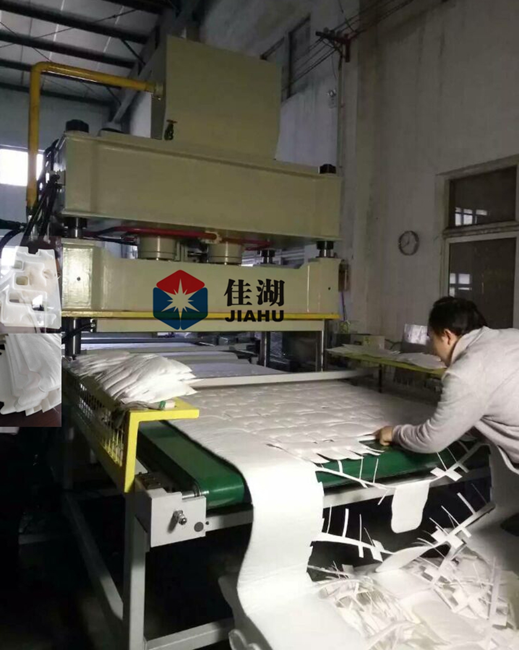 本機器是吸音棉成型裁斷的理想設備;能滿足吸音棉的壓制成型;汽車隔熱墊,隔音氈等產品的冷熱成型裁切生產。