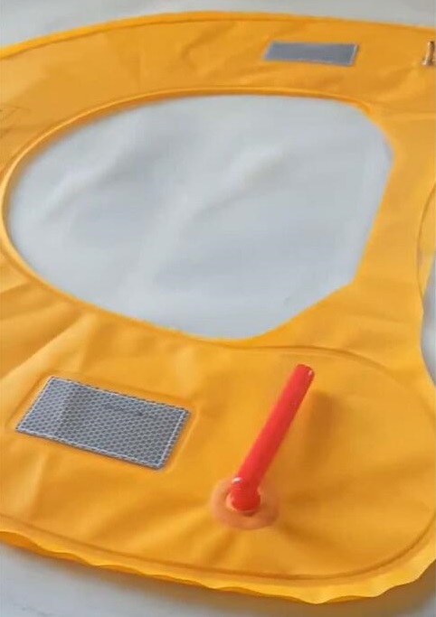 1、是將救生衣或救生圈裁切好的材料用雙頭高頻機(jī)先將充氣氣嘴壓好,氣嘴壓好的樣品請參考!